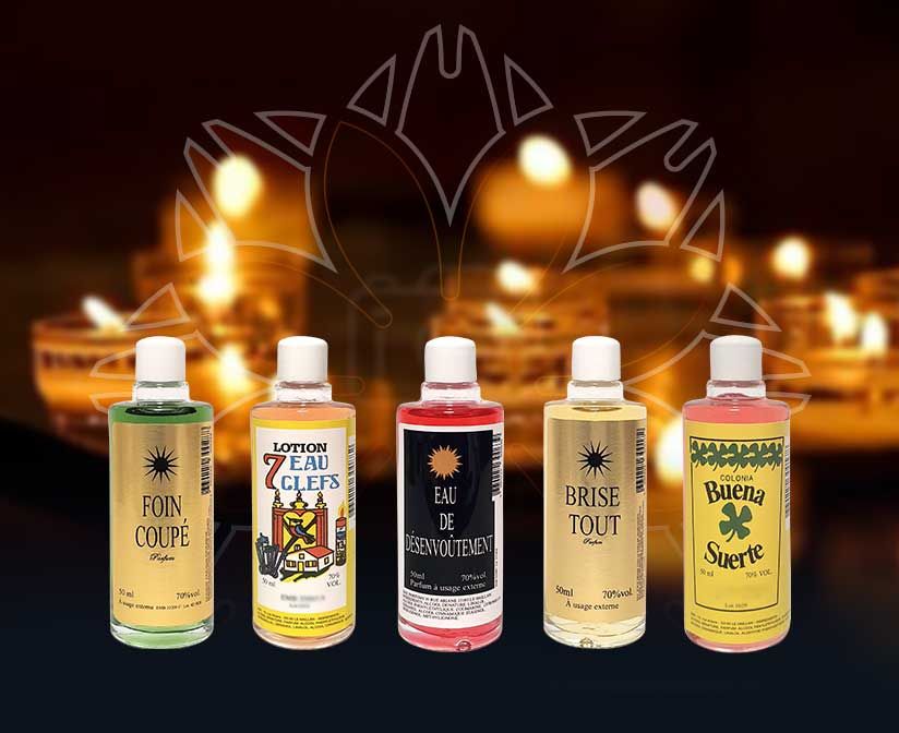 Les lotions haïtiennes se transmettent, se conseillent, se découvrent. Issues d’une parfumerie de tradition ésotérique, ceux qui les portent connaissent leur force et leur puissance. Les parfums magiques sont des talismans qui vous apportent protection et ouvrent le chemin de l’enchantement, de l’abondance. Ils répondent à vos désirs les plus secrets.